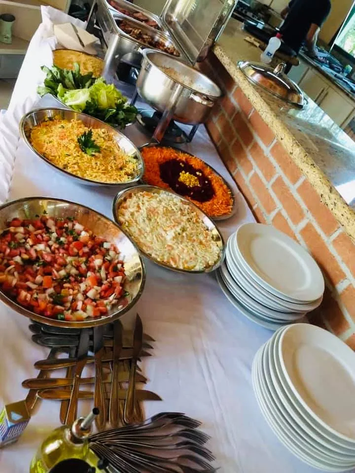Cozinheira, garçom e auxiliar chegam antes, montam, servem com educação e vão embora com tudo limpo. Sem improvisos.