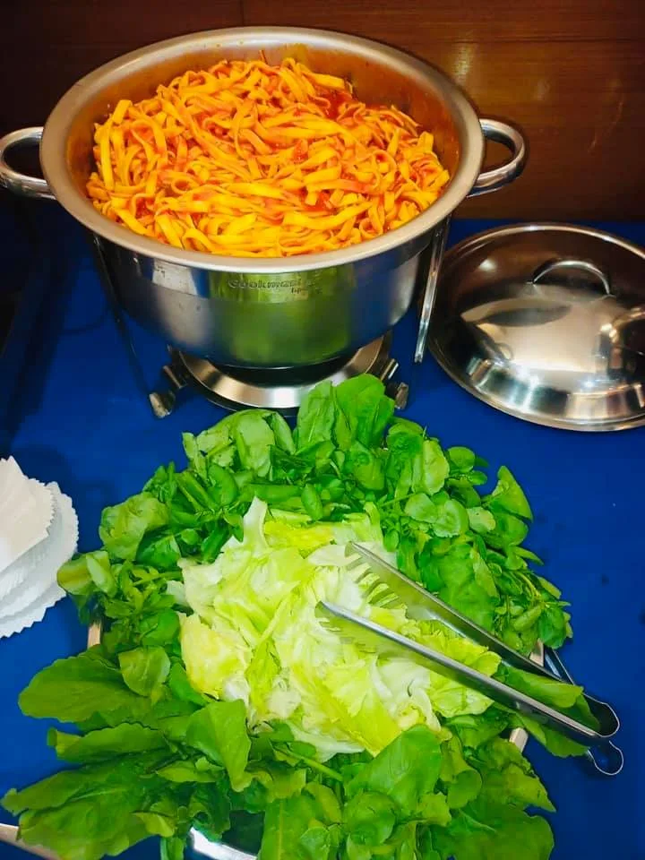 Buffet italiano com 1 massa recheada e 1 massa seca à escolha, 2 tipos de molho, canapés, salgados e estrutura completa de festa.